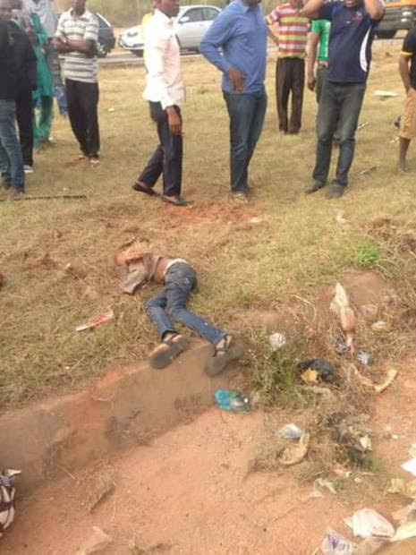 This accident happened yesterday in Delta state, reportedly infront of the Asaba Airport. All 3 members of the family in the car died on the spot.